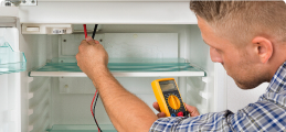 • Мастер выполняет ремонт холодильника: меняет неисправные детали, восстанавливает проводку.